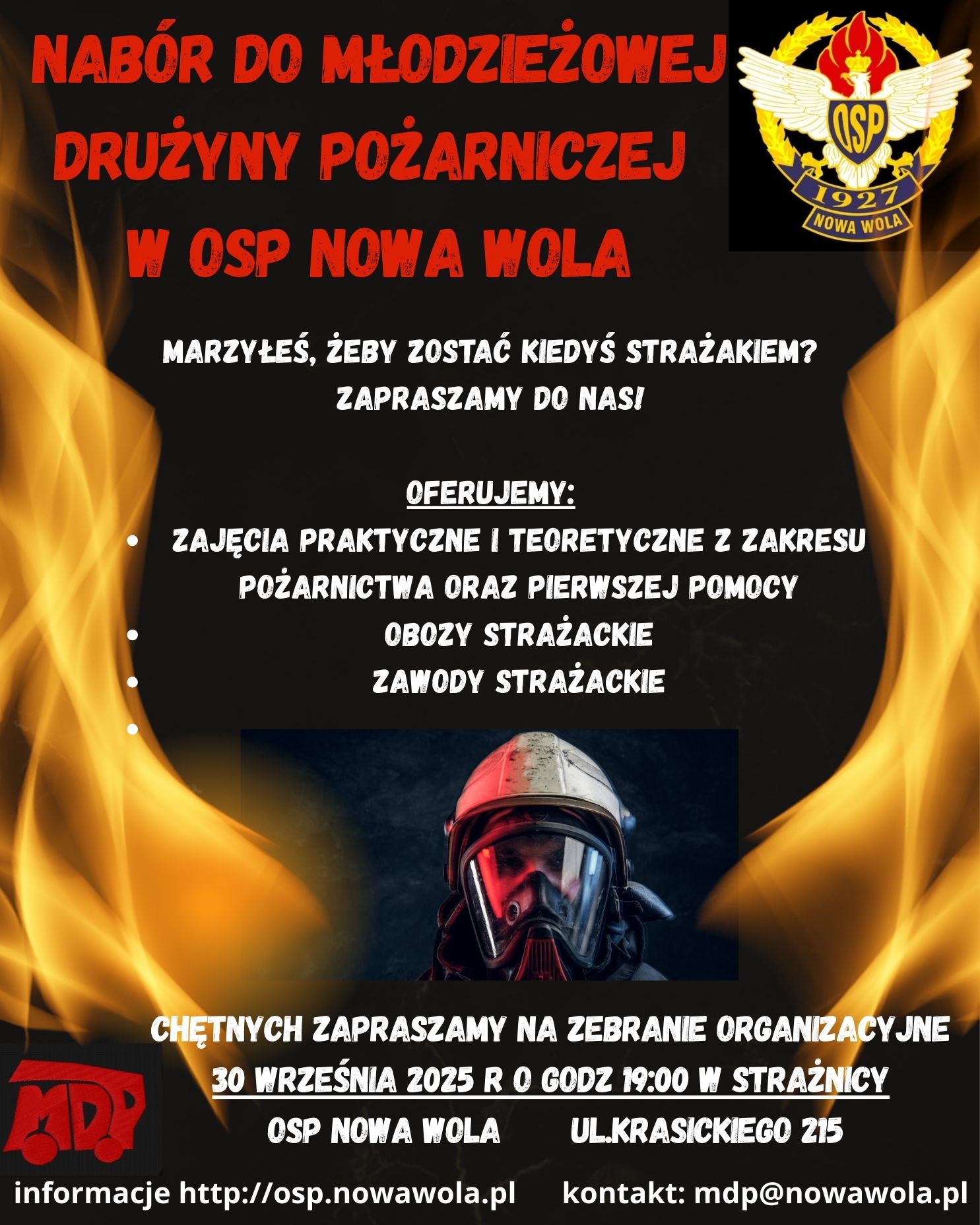 Aktualności2025.09.11 - Nabór do Młodzieżowej Drużyny PożarniczejUczestnicząc w MDP Nowa Wola zdobędzięcie wiedzę oraz umiejętności z zakresu: